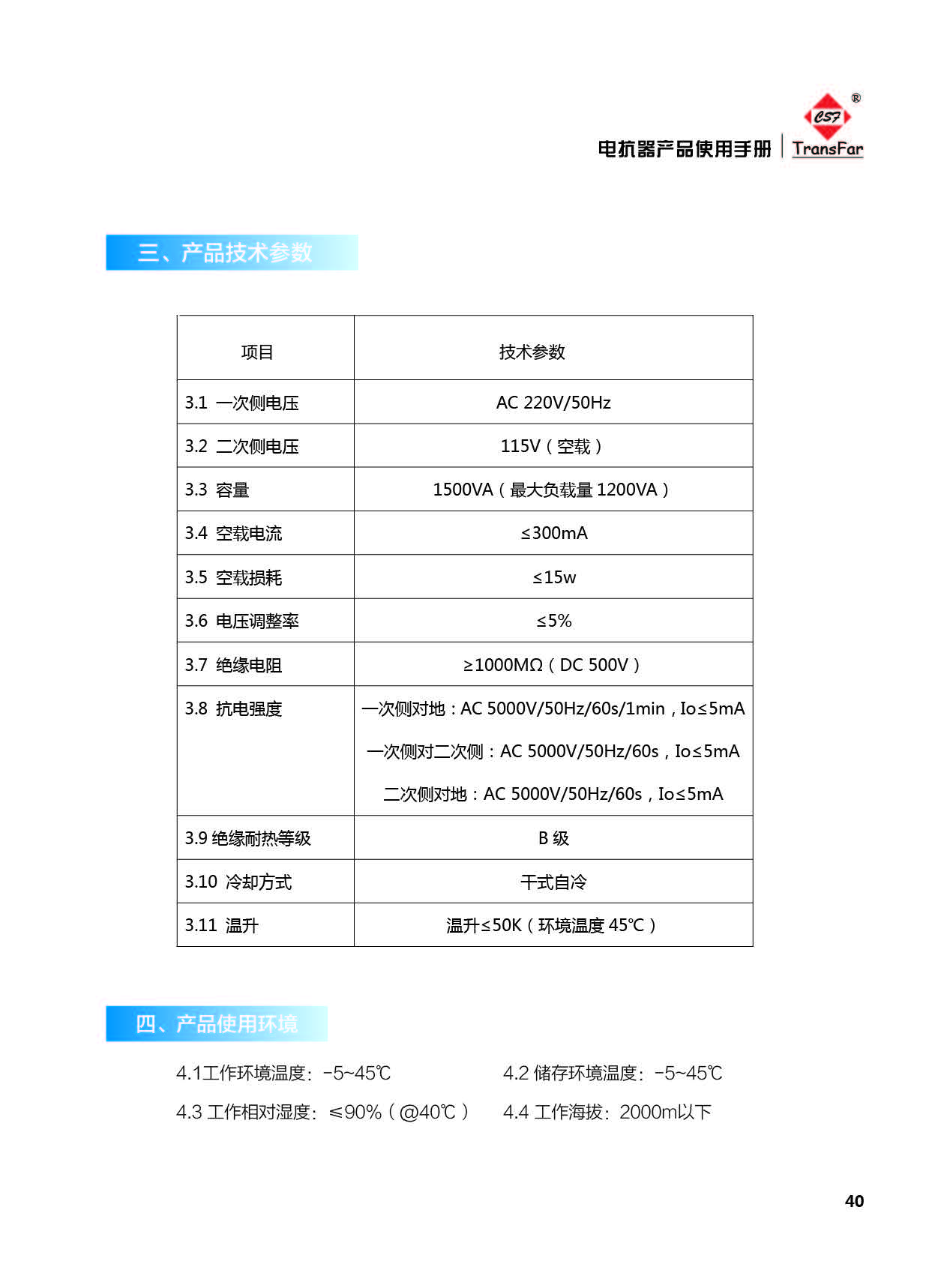4.4 工作海拔:2000m以下