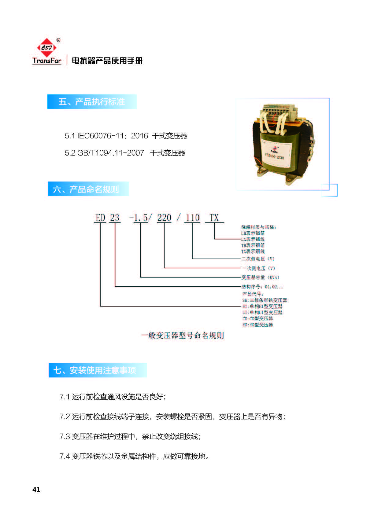 标准产品通用技术参数: