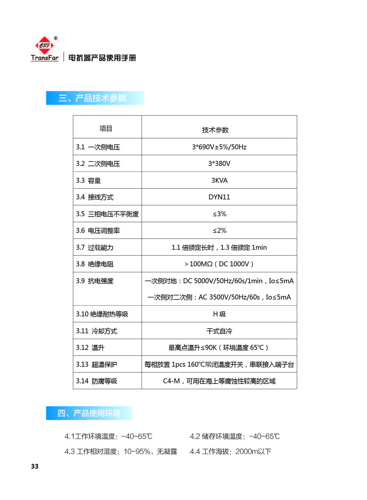 4.1 工作环境温度: -40-65°C