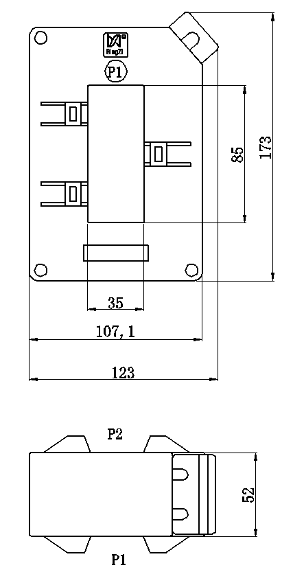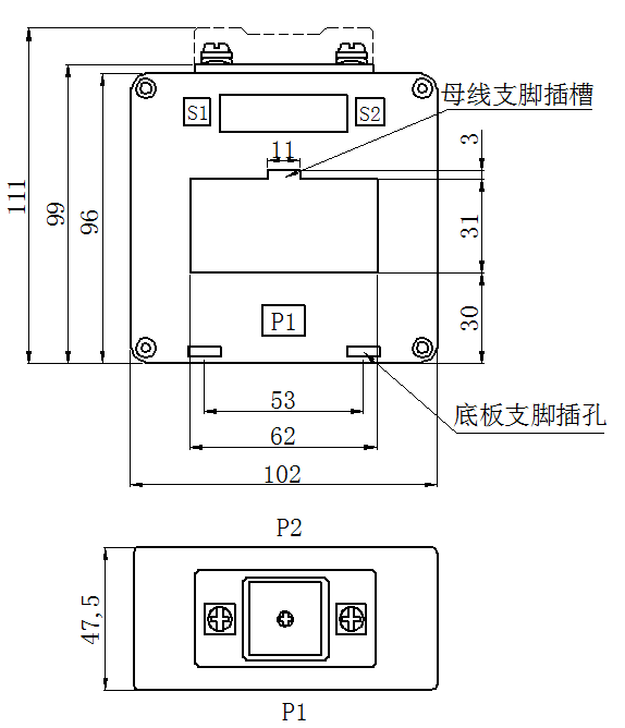 特点: 1.立式穿芯,安装方式灵活,既可固定于母线上,又可固定在底板上; 2.可配用多种型式的母线,如扁排式、圆形母线或电缆线; 3.输出端子为螺丝紧固压线式标准端子,便于在工程现场接线; 4.盒式结构,塑壳封闭,外形美观。